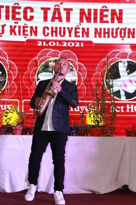Nghệ sĩ saxophone quốc tế Lê Duy Mạnh trình diễn tại lễ chuyển nhượng lan tiền tỷ của doanh nhân Lê Kim Thành.