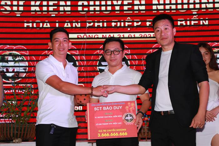Doanh nhân Lê Kim Thành trong lễ chuyển nhượng lan giá trị khủng (gần 12 tỷ đồng).