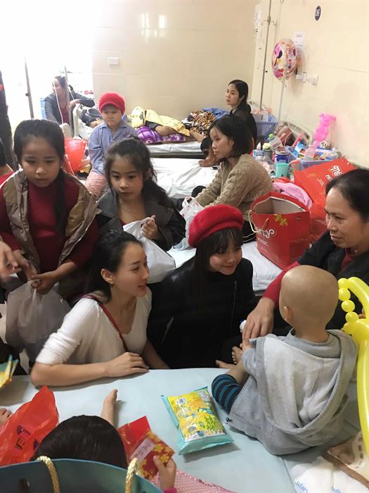 Tintuc - Những ngay cận kề cái tết Kỷ Hợi này, Valentines Vân Nguyễn cùng các bé mẫu nhí trong chương trình Tuần lễ thời trang trẻ em - Celebrations of_Hanoi Junior Fashion week 2018 tới bệnh viện K Tân Triều tại Hà Nội để tặng quà tết cho người già và trẻ em mắc căn bệnh quái ác - ung thư - phải xạ trị lâu dài tại bệnh viện này.