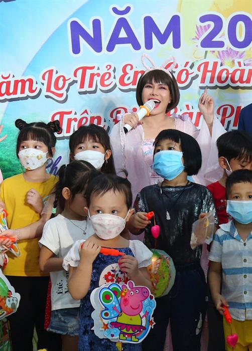 Vào vai nàng Thỏ Ngọc nhí nhảnh, đáng yêu, Việt Hương tiết lộ cô mượn được bộ trang phục của nghệ sĩ Bình Tinh cho buổi trung thu sớm rất đặc biệt này. Tại chương trình, vợ chồng Việt Hương tặng 600 chiếc bánh Trung thu do chính công ty chị sản xuất, đồng thời trao cho các em nhỏ hàng trăm chiếc đèn lồng đủ các màu sắc kiểu dáng được chuẩn bị tỉ mỉ.