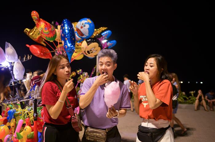 Thanh Duy, Khả Nhưvà Liêu Hà Trinh cũng dành thời gian trải nghiệm đi bộ dọc con đường trọng điểmTrần Phú và hòa vào không khí nhộn nhịp của giới trẻ, cả hội rôm rả với những câu chuyện cười, những trò chọc ghẹo nhau tạiQuảng trường 2/4 – quảng trường lớn nhất mang tính lịch sử và là biểu tượng của thành phố Nha Trang. Tại đây, Khả Như còn “lầy lội” đi xin diều của khách ven đường, cùng Thanh Duy, Hà Trinh chơi các trò chơi như thả diều, chạy xe cân bằng, thưởng thức món ăn đường phố…