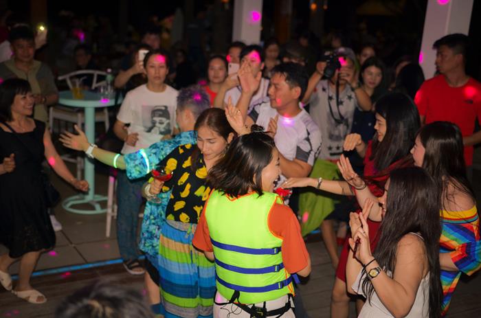 Rời khỏi chợ đêm, cả ba còn giữ nguyên bộ trang phục đi biển mới sắm,”lầy lội” mặc áo phao đi club vui chơi, nhảy nhót cực sung. Bất ngờ hơn là sự xuất hiện của tập thể FC Nha Trang của Thanh Duy, Khả Như, Hà Trinh cũng có mặt để chào đón thần tượng của mình khiến cả ba xúc động ôm nhau bật khóc. Buổi họp FC diễn ra trong không khí thân mật, ấm cúng giữa bãi biển ngồi bên nhau cùng chia sẻ những kỷ niệm sẽ mãi là những hình ảnh đẹp trong chuyến hành trình đáng nhớ cùng Việt Nam Tươi Đẹp của bộ ba khách mời Thanh Duy, Khả Như, Hà Trinh.