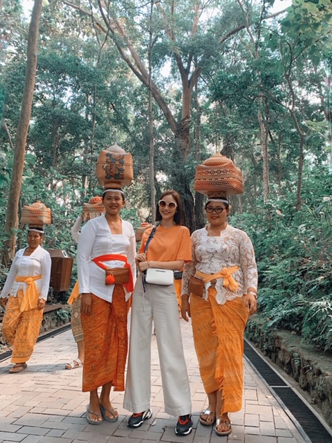 Nơi đây được xem như là một trong những di sản tâm linh thiêng liêng đối với người dân Indonesia nên nếu có đến đây thì bạn cần phải ăn mặc nghiêm chỉnh nhé. Trước khi vào đền, phải mua vé vào cổng giá là 15 IDR/người ~ 25.000đ. Sau đó sẽ được phát một sarong để quấn vào người đi vào đền (đó là phong tục của người bên họ). Với chiếc sarong truyền thống đã làm cho Hà Thu rất thích thú với nền văn hoá của người dân Bali.