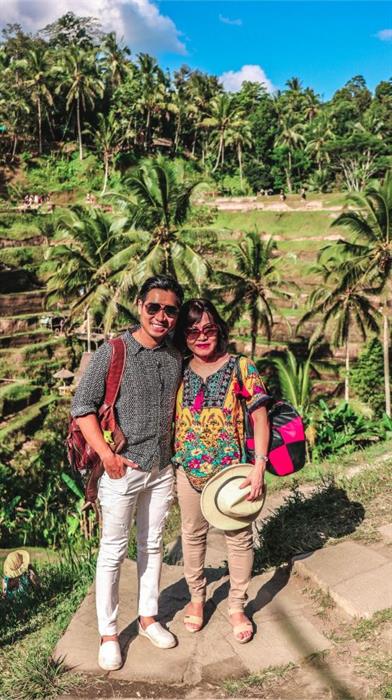 Tintuc - Nhân dịp sinh nhật của mình 25/7, Nguyên Khang mời mẹ sang Bali để du lịch.