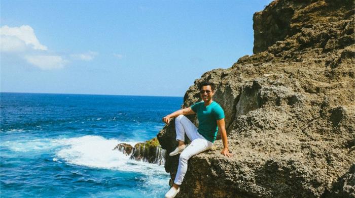 Điểm đầu tiên Kelingking Beach nguyên hình một con cá voi khổng lồ .Từ trên cao nhìn xuống, bên trái con cá voi là một hòn đảo nhỏ hình bầu dục như quả trứng con khủng long, bên phải là một bờ biển cát trắng, nước xanh thăm thẳm, sóng biển vỗ vào bờ cát trắng xóa. Cảnh tượng thật đẹp và hùng vĩ, choáng ngợp không diễn tả bằng lời! Có một con đường mòn dẫn từ lưng con cá voi xuống bãi biển đẹp ngây ngất.