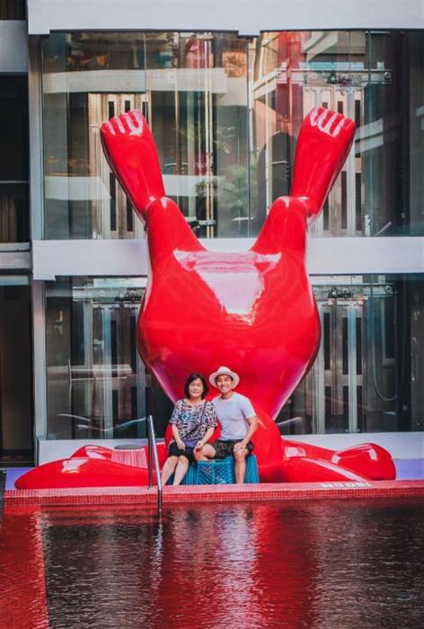 Đây là khách sạn nhận được rất nhiều giải thưởng với biểu tượng con thỏ vấp ngã. Hai mẹ con lưu lại những hình ảnh kỷ niệm