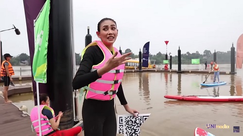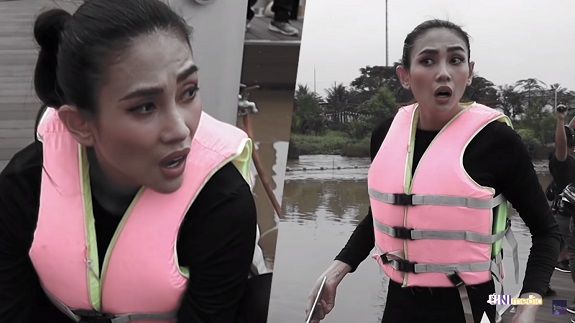 Không quên “cà khịa” biên tập khi Team khăn rằn không một ai té xuống nước, vẫn giữ vững thần thái ngời ngời