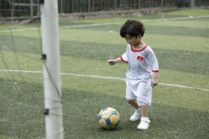 Tintuc - Nếu bé Đậu nhà Ba Duy nổi tiếng “cứng đầu” không chịu nghe lời thì khi ra sân đá banh lại “cực ngầu”, liên tục ghi bàn với thầy Công Vinh.