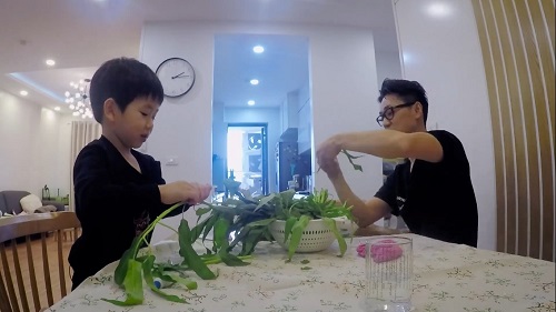 Dù vụng về, luống cuống khi lần đầu vào bếp nhưng Ba Duy lại có được phụ bếp – bé Đậu giúp đỡ nhiệt tình. Cậu bé không chỉ nhặt rau muống, đập trứng giúp bố, Đậu còn trở thành đạo diễn nhí quay lại những thước phim hài hước của hai bố con trong quá trình chuẩn bị bất ngờ cho mẹ. Sau vài tiếng lăn lộn và có sự giúp đỡ của bé Đậu, Ba Duy bày một bàn thức ăn hoành tráng cả về số lượng lẫn hình thức, không gian trong nhà được trang trí lãng mạn.