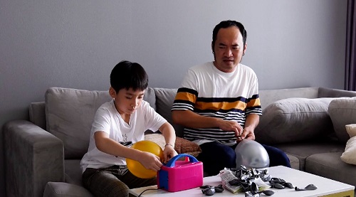 Kết thúc buổi học boxing thú vị, hai bố con trở về nhà để chuẩn bị món quà đặt biệt cho mẹ. Lần đầu phối hợp cùng bố tạo bất ngờ cho mẹ Thu Trang khiến Andy vô cùng hào hứng. Cậu bé phụ bố bơm bong bóng, làm vương miện,…Ngoài trang trí nhà cửa, Tiến Luật còn cùng con trai còn làm một đoạn clip ghi lại hành trình chuẩn bị của hai bố con cùng những chia sẻ tình cảm.