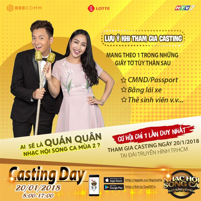 Được biết, Casting Day (casting trực tiếp) sẽ diễn ra 1 ngày duy nhất từ 8:00 đến 17:00 thứ bảy, ngày 20/01/2018 tại Đài truyền hình TP. Hồ Chí Minh.
