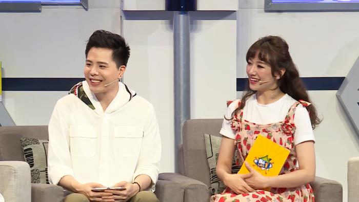 Khi bị bạn dẫn Trịnh Thăng Bình trêu chọc vì trang phục “cưa sừng làm nghé”, Hari Won biện minh: “Dâu tây là trái cây yêu thích nhất của chị. Mà chị thấy bé thiếu nhi nào cũng thích dâu tây hết đó nên hôm nay chị quyết định mặc chiếc đầm này”. Như muốn chọc tức “đàn chị”, Trịnh Thăng Bình nhận định: “Nhưng mà em tự tin mình được các bé yêu thích hơn chị đó”. Hari Won lập tức phản bác: “Không! Ai nói gì thì nói, chứ cái này mình có thể cãi tới sáng luôn nha. Thật ra Hari Won để ý thấy rất nhiều em bé thích mình và Trấn Thành, vậy thôi đó. Còn Trịnh Thăng Bình được yêu thích ra sao thì Hari không biết”.