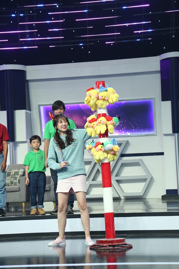 Tiếp đó, với câu hỏi “Liệt kê tên các bộ phim hoạt hình trong vòng 30 giây”, bé Nguyễn Khôi hồn nhiên đặt cược 10 đáp án trong khi bản thân chỉ mới nghĩ ra 4 câu trả lời. Đến lúc này, Hari Won trở nên mất kiên nhẫn: “Cô nghĩ là câu hỏi này bố con sẽ không trả lời được nhiều như vậy đâu. Con có suy nghĩ trước khi đặt cược không hay con chỉ thích đặt cao cho vui thôi”. Sau khi được nữ MC khuyên nhủ, Nguyễn Khôi vẫn cương quyết với sự lựa chọn của mình: “Con tự tin bố của con có thể làm được”. Thế nhưng đáng tiếc, anh Hữu Hoài chỉ kịp trả lời 9 đáp án trong 30 giây.