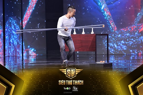 Một trong những Người Thách Thức có phần chào sân thú vị nhất trong tập 3 là Long Trấn Vũ. Xuất hiện trên sân khấu trong trang phục của 1 đầu bếp chế biến 1 món ăn mời BGK thưởng thức, Trấn Vũ khiến BGK thắc mắc không biết điều gì sắp diễn ra và năng lực đặc biệt nào sẽ được trình diễn. Cho đến khi 1 đôi đũa khổng lồ được mang lên sân khấu và nghe mô tả về thử thách “Đôi đũa ngàn cân” mà Trấn Vũ sắp đối đầu, tất cả mọi người đều choáng ngợp! Ở cấp độ Phá vỡ giới hạn, Trấn Vũ sẽ sử dụng đôi đũa “siêu to khổng lồ” với trọng lượng 16kg, dài 2,6m để gắp lần lượt 3 quả trứng gà đặt lên miệng 3 lọ hoa. Với sức khỏe của mình, Trấn Vũ sẽ chinh phục thành công thử thách này?