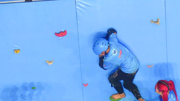 Vượt Tường Cao dường như là thử thách khó khăn nhất đối với Huy Trí khi phải leo qua 2 bức tường chỉ bằng một sợi dây thừng.