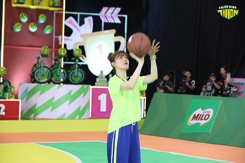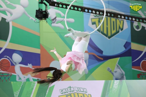 Nếu như khán giả vốn quen với hình tượng nữ tính của Khả Như trên màn ảnh thì bước ra sân Chiến Binh Tí Hon, nữ diễn viên đã thực sự ‘lột xác’. Không còn là những bộ cánh bồng bềnh tiểu thư, Khả Như đã đóng vai trò ‘đả nữ’ trong tiết mục của đội Xanh – Mèo Ngầu. Để bảo vệ cho Hari Won, Khả Như đã liều lĩnh ‘1 đấu 3’ với các đối thủ nặng ký. Cô nàng thực hiện nhiều động tác võ thuật mạnh mẽ, đặc biệt là cú bay người kẹp cổ khiến đối phương gục ngã. Được biết vì tập luyện quá nhiệt tình, trước giờ ghi hình Khả Như đã bị chấn thương. Tuy vậy, nữ diễn viên vẫn hoàn thành xuất sắc tiết mục của đội. Bên cạnh đó, Hari Won cũng trình diễn kỹ năng ném bóng rổ ‘bách phát bách trúng’ khiến các em bé phải bất ngờ, nể phục. Sự ngọt ngào tươi sáng của Hari Won cùng với màu sắc mạnh mẽ của Khả Như đã tạo nên đội Xanh – Mèo Ngầu.