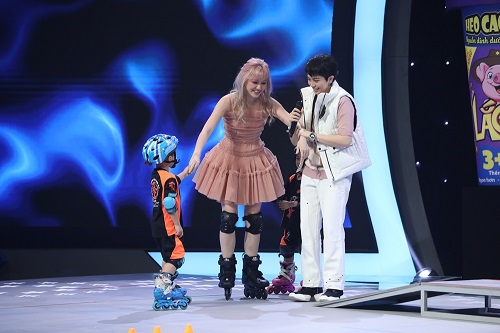 Teaser đầu tiên về tập phát sóng ngày 15/6, Hari Won và Đông Nhi đã có cú ngã chổng vó trên sân khấu. Vốn là nữ giám khảo nổi tiếng với độ lăn xả hết mình, Hari Won không ngại ngần tham gia cùng các bé ở từng bộ môn riêng biệt. Đây cũng chính là điều khán giả mong chờ tại Siêu Tài Năng Nhí. Trong đoạn video quảng bá tập 1, Trấn Thành đã “ép” vợ chơi trò vượt địa hình với giày patin. Dù sợ hãi nhưng Hari Won vẫn chấp nhận lời yêu cầu của chồng.