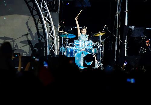 Sân khấu của nữ ca sĩ Lyly vừa sáng đèn, khán giả đã vô cùng phấn khích như không thể chờ đợi thêm để được gặp thần tượng ngay lập tức. Cô nàng bước ra xinh đẹp tựa nàng thơ, cất giọng ngọt ngào thôi miên toàn bộ khán giả, đưa mọi người đắm chìm vào ‘vũ trụ tình yêu’ vừa lãng mạn, vừa nồng nàn. Màn solo trống bất ngờ của Lyly như một món quà đặc biệt mà nữ ca sĩ dành tặng đến khán giả đêm nhạc School Fest.