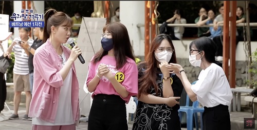 Trong nhiều tình huống, chủ nhân hit Anh cứ đi đi dịch sang tiếng Hàn các chia sẻ của những sinh viên Việt Nam. Đồng thời, Hari Won cũng giúp sinh viên Việt Nam hiểu hơn các câu hỏi tiếng Hàn mà phía chương trình đưa ra. “Tôi dịch tiếng Hàn sang cho ê kíp và nói tiếng Việt cho những bạn sinh viên nghe”, Hari Won kể lại quá trình cô giúp đôi bên “rút ngắn khoảng cách ngôn ngữ” trong show Woorimal Battle. “Phía chương trình bảo rất bất ngờ khi tôi làm tốt hơn họ mong đợi”, Hari Won chia sẻ.