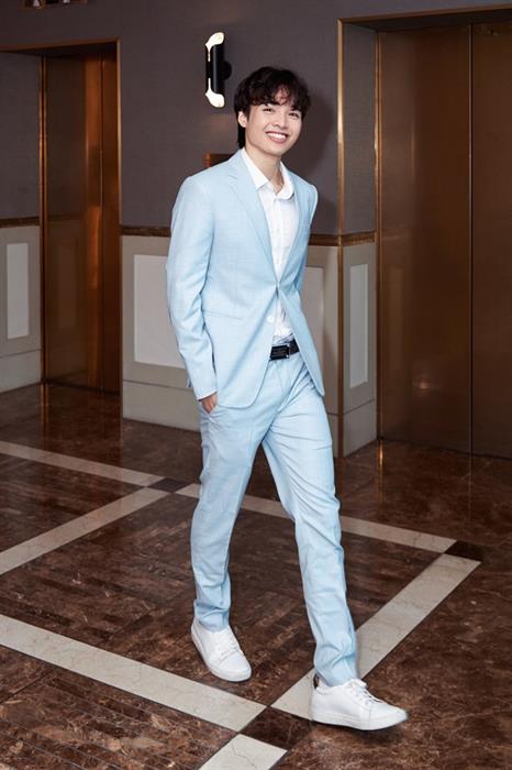 Nam MC đã có mặt tại địa điểm từ sớm để nắm bắt không khí sự kiện và chuẩn bị thật tốt cho công việc hôm nay. Anh còn chọn trang phục theo tone màu xanh trắng để “mix and match” cùng màu concept Miss World Việt Nam.