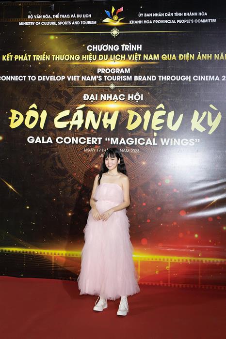Đến chương trình Liên kết phát triển thương hiệu du lịch Việt Nam qua điện ảnh năm 2023, Khánh Vân nổi bật với bộ váy hồng dịu dàng cùng lối trang điểm tự nhiên, tôn lên vẻ đẹp trong trẻo và ngọt ngào. Dù đã lâu không lộ diện công khai, nhưng người đẹp vẫn tự tin trước ống kính truyền thông.