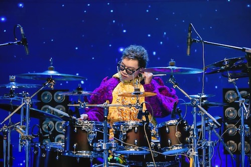 Tintuc - Ngồi sau bộ trống tạo nên những giai điệu ma quái trên sân khấu, Cường Nhóc thoả sức cùng niềm đam mê to lớn với chơi trống cũng như làm âm nhạc.