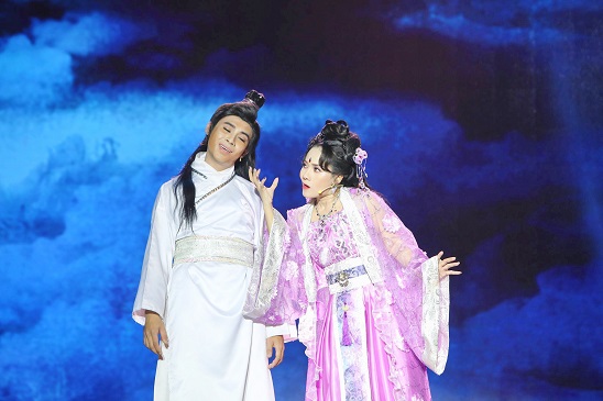 Từ Thức Lên Tiên là trích đoạn kinh điển được tái hiện trên sân khấu tuần này, được sáng tác bởi soạn giả Tô Thiên Kiều. Tô Tiểu Long – chàng Từ Thức thích được ngao du tự do muôn nơi, nhưng cũng chính điều đó đã đẩy anh vào hố đen không lối thoát. Thy Nhung lần này vừa hóa thân thành nàng Giáng Hương tuyệt sắc, vừa là nàng hiền thê dịu dàng, thậm chí còn là bà lão 60 tuổi. Đảm nhận một lúc ba vai trò, Thy Nhung vẫn mượt mà biến chuyển. Khi thì quyến rũ, mê người với vũ đạo uyển chuyển, khi thì khổ tâm, đau đớn qua giọng hát sâu lắng, ngọt ngào. Chàng kép Tô Tiểu Long với nét diễn có chiều sâu, khiến khán giả nhói lòng khi cất lên câu thoại cuối chất chứa nỗi ân hận, ánh mắt hằn lên nỗi xót xa. Cặp đôi như hai mảnh ghép hỗ trợ lẫn nhau tạo nên màn trình diễn ấn tượng và mãn nhãn, kết lại vòng 3 đầy gây cấn và hấp dẫn.