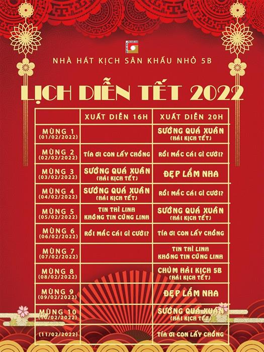 Nghệ sỹ – đạo diễn Chánh Trực trong mùa Tết 2022 chia sẻ “Nghệ sỹ mà, Tết là thời gian phải lao động gấp đôi để phục vụ khán giả. Nhưng nói thật là không biểu diễn, không được làm nghề mới buồn, bởi nghệ sỹ đã mất một mùa Tết 2021 vì dịch bệnh. Với các vở diễn mà anh chị em Nhà Hát 5B tập luyện và mang đến sắp tới đều hy vọng mang lại món ăn tinh thần đầu xuân tưng bừng, đón năm mới nhiều hân hoan!”