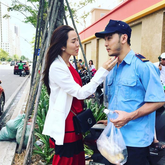 Trong những ngày quay đầu tiên, Kim Cương cũng có mặt và túc trực để chăm sóc cho ông xã có những cảnh quay được tốt nhất. Dù đang mang bầu nhưng bà xã Ưng Hoàng Phúc không ngại nắng nôi, mệt mỏi lau từng chút mồ hôi cho chồng. Cô còn mua trái cây để cho ông xã ăn lấy lại sức. Con trai Quốc Minh thì luôn gọi điện thoại facetime cho ba mẹ, nhõng nhẽo đòi mẹ về nhà.
