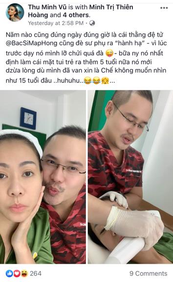 Thu Minh chia sẻ trên trang Facebook cá nhân rằng học trò cưng của cô, bác sĩ – ca sĩ Hoàng Thiên Minh Trị - hay còn được biết tới với nickname Bác Sĩ Mập Hồng – chính là người chăm sóc sắc vóc của nữ diva bằng các phương pháp trẻ hoá không dao kéo. Được biết, mối quan hệ thầy trò của Thu Minh và Bác Sĩ Hoàng Thiên Minh Trị bắt đầu từ khi Minh Trị tham gia Vietnam Idol 2016 và lọt vào top 7, ghi dấu vào lòng khán giả với biệt danh đáng yêu “bác sĩ tăng động”. Thu Minh đã từng chia sẻ rằng chính Minh Trị là người đã truyền cảm hứng cho chị để luôn yêu thương bản thân và trở nên xinh đẹp hơn.