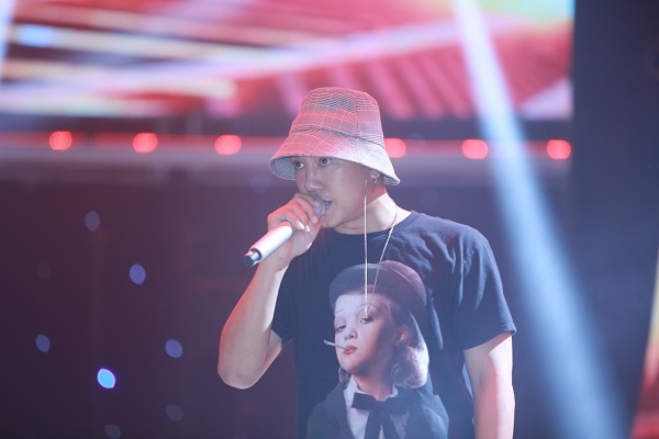 Gương mặt lấp lánh mồ hôi, nam ca sĩ tỏ ra rất tâm huyết với màn trình diễn sôi động và không kém phần độc đáo lần này.