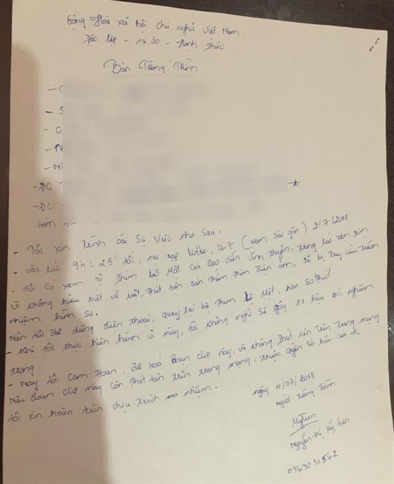 Cô gái này xem phim ở một rạp chiếu tại quận 7, TP.HCM và sau đó đăng trên Facebook cá nhân. Vài giờ sau, đạo diễn Vĩnh Thuyên phát hiện sự việc và hẹn gặp cô gái này để giải quyết sự việc.