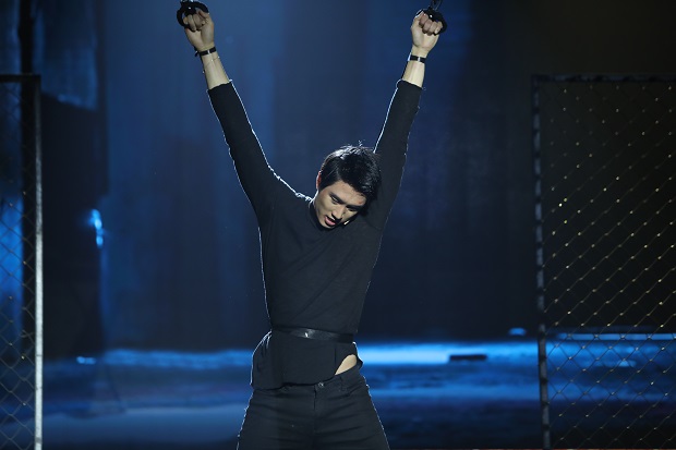 Thí sinh đầu tiên bước lên sàn đấu – Trung Huy – với ngoại hình sáng và nổi bật, nam diễn viên đã nhận được nhiều sự yêu thích từ ban giám khảo trong tập trước. Với trích đoạn Sống, chàng trai 9X vào vai nhân vật bị cắn bởi chó dại, tiếp sau đó những triệu chứng cực kỳ đáng sợ. Nhập vai từ ánh mắt đến hành động, “Phong Lụi” khiến người xem đứng hình vì diễn xuất “quá thật”, tưởng tượng được sự đau đớn cùng bất lực của người bị “bệnh dại”.