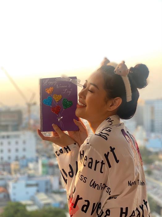 Trước đó, Hoa hậu Khánh Vân từng công bố nhiều hình ảnh bên cạnh gia đình. Mẹ là người luôn đồng hành với Hoa hậu Khánh Vân, gần đây nhất cả hai mẹ con cùng nhau phát nước rửa tay cho người dân quanh khu vực đang sinh sống. Vì vậy, nhân ngày 08/03, Hoa hậu Khánh Vân quyết định làm một tấm thiệp nhỏ để tặng mẹ.