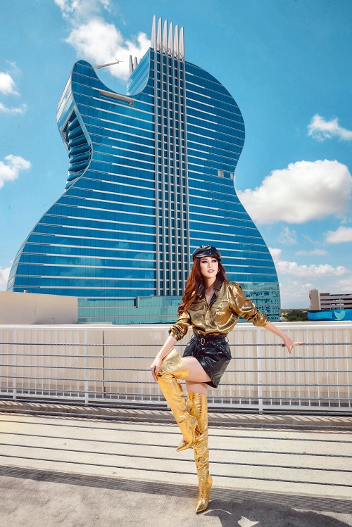 Hoa hậu Khánh Vân diện trang phục cực chất, sải bước tự tin sẵn sàng cho những ngày thi sắp tới.