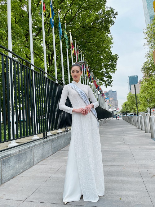 Đón tiếp Khánh Vân là Đại sứ Đặng Đình Quý, Trưởng phái đoán Thường trực Việt Nam tại Liên Hợp Quốc. Khánh Vân chia sẻ, khi đặt chân đến Lãnh sự quán Việt Nam tại New York, cô vô cùng xúc động bởi có cảm giác đang ở quê hương. Đó là lý do Khánh Vân chọn áo dài cho ngày ý nghĩa này. Nói về việc trở về Việt Nam, Khánh Vân tiết lộ cô và ê kíp vẫn đang làm việc để có thể sớm trở về, do tình hình dịch Covid-19 hiện đang diễn biến khá phức tạp.