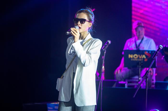Hà Nhi, top 4 Vietnam Idol 2015 cũng có mặt tại sân khấu tổng duyệt. Sau khi tham gia Vietnam Idol, cô gần như ít khi tham gia vào các chương trình âm nhạc và hiếm khi ra sản phẩm. Diện nguyên cây suit trắng trẻ trung, Hà Nhi cực nhắng nhít trên sân khấu. Cô còn giả đóng nam nắm tay đạo diễn Lê Việt đi một vòng quanh khán phòng.