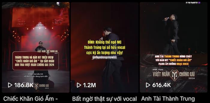 Sau đêm Công diễn 1 chương trình truyền hình thực tế “Anh trai vượt ngàn chông gai”, MC Thành Trung đã nhận được nhiều tình cảm của khán giả hâm mộ. Cụ thể, phần trình diễn ca khúc “Chiếc khăn gió ấm” của anh đã có được tổng cộng hơn 2 triệu view trên mạng xã hội Tiktok. Đây cũng là clip có số lượng view đứng đầu trong số các màn trình diễn của Công diễn 1.