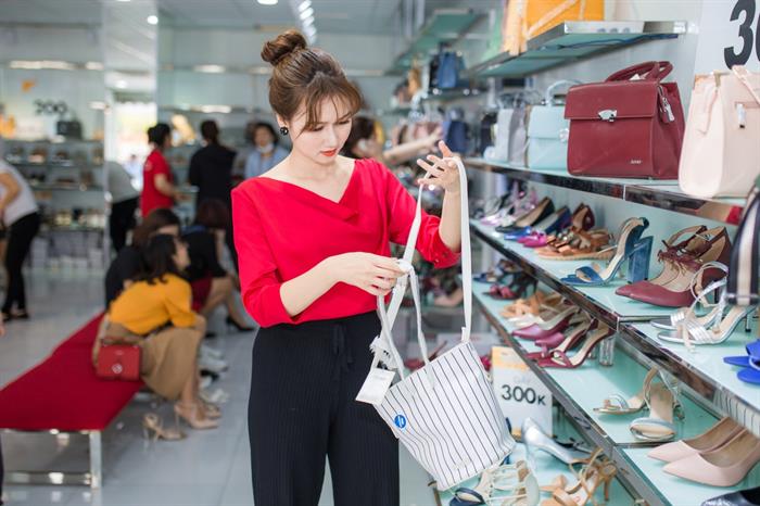 Vốn là người yêu thích thời trang, diễn viên Hương Giang (Sống chung với mẹ chồng) có mặt tại cửa hàng giày khá sớm tranh thủ lựa chọn mẫu giày cho công việc cũng như dạo chơi. Người đẹp bật mí cô thường lựa chọn mẫu giày cao gót tham gia các sự kiện. Riêng những mẫu giày đế thấp được Hương Giang tận dụng triệt để mỗi lần dạo phố. Đồng thời Hương Giang còn lựa chọn mẫu giày, túi xách đồng giá 300-500K để dành tặng cho bạn bè, người thân.