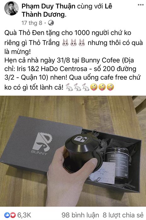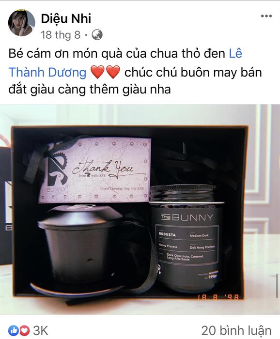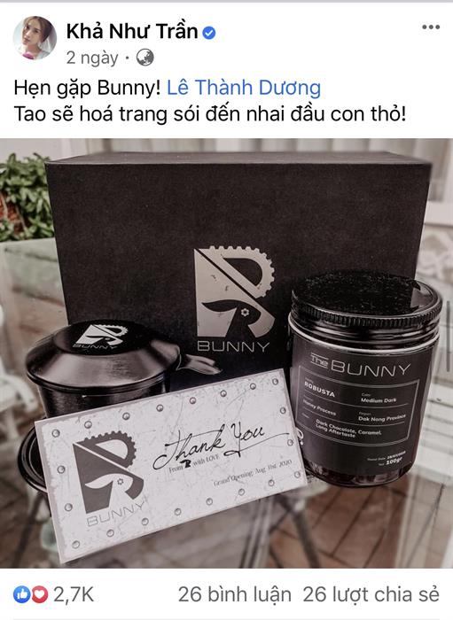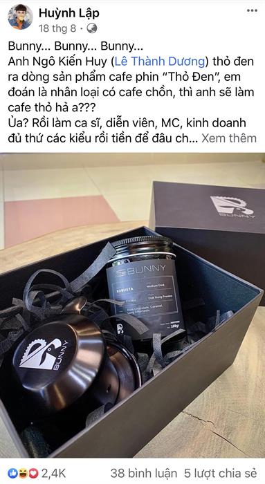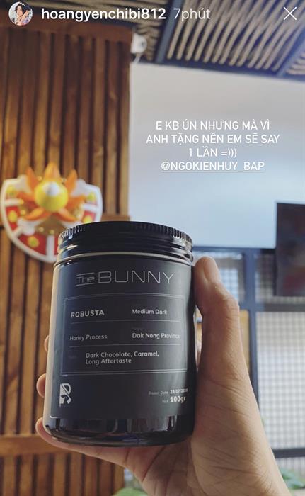 Bunny chính là thỏ đen, cũng là nickname của Bắp khi tham gia chương trình truyền hình Chạy đi chờ chi rất hot năm qua. Sau khi tìm hiểu thì hộp quà được gửi đến các sao của Ngô Kiến Huy bao gồm: một hũ cà phê được đựng trong hũ thuỷ tinh cao cấp mà theo đa số đánh giá là rất thơm ngon, một chiếc phin có logo Bunny với kích thước chuẩn để pha 1 ly cà phê.
