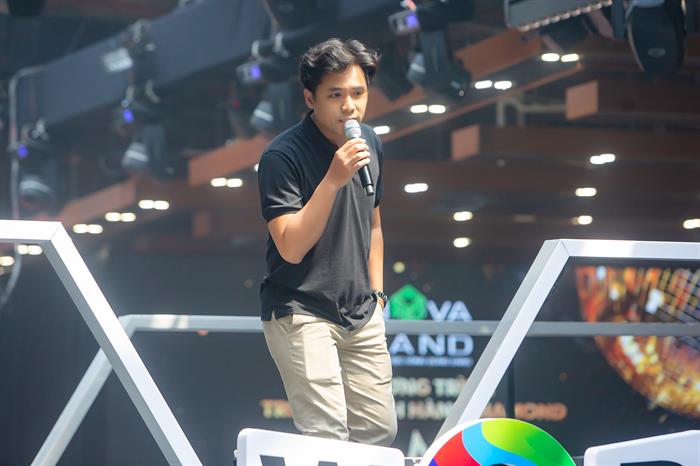 Buổi tổng duyệt còn có sự xuất hiện của diễn viên - ca sĩ Quý Bình. Anh đến sớm đi thử sân khấu để xác định vị trí biểu diễn, tương tác cùng khán giả trong đêm diễn tối nay và chụp ảnh giúp ca sĩ Âu Bảo Ngân.