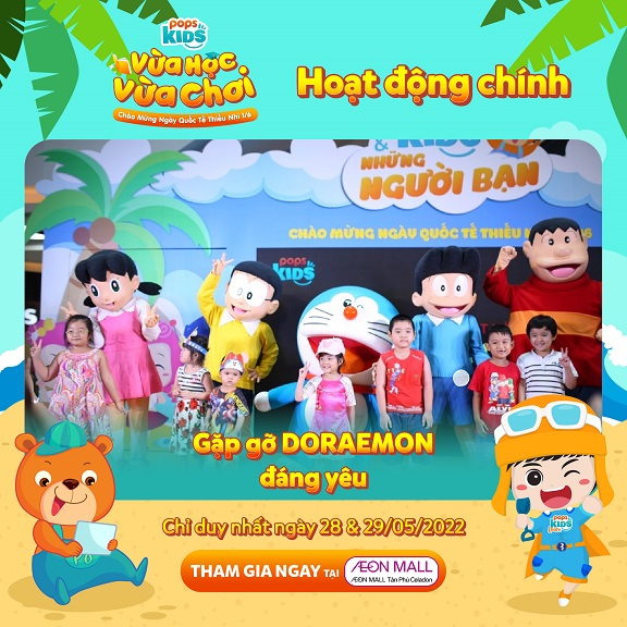 Bên cạnh đó còn có sự góp mặt của chú “Mèo ú” Doraemon vui chơi cùng các bé.