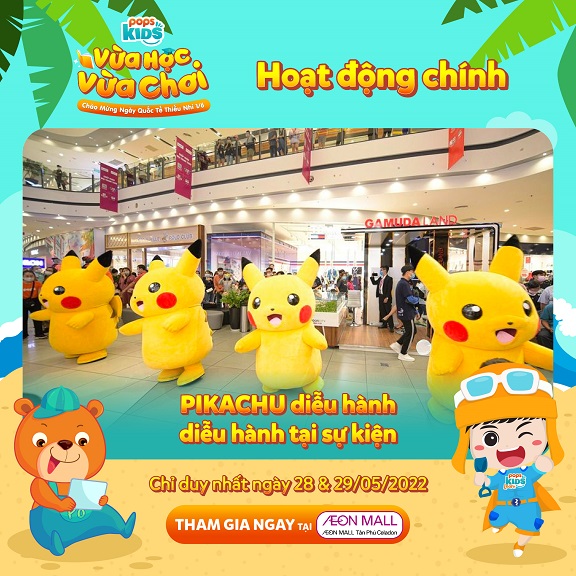 Đến với sự kiện lần này, các bạn nhỏ sẽ được “đội quân” Pikachu chào đón nồng nhiệt với màn diễu hành hoành tráng trong tiếng nhạc rộn ràng. Chơi đùa cùng bé, “đội quân” mũm mĩm này sẽ chỉ cho bé biết như thế nào là lắc lư kiểu Pikachu. Theo bật mí của POPS Kids, ngoài đội quân Pikachu và chú “Mèo ú” Doraemon cùng hùng hổ không kém với những trò chơi thú vị cùng các bé.