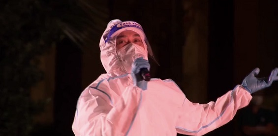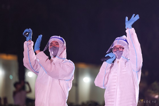 Dù đóng mình trong những bộ trang phục bảo hộ kín, hát qua lớp khẩu trang ngột ngạt và cách xa khán giả vẫn không làm giảm đi sự nhiệt huyết và tình cảm của các nghệ sỹ dành cho các bệnh nhân và bác sĩ.