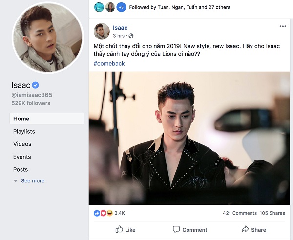 Những hình ảnh anh chia sẻ trên fanpage được cộng đồng mạng yêu thích và bình chọn. Có thể thấy từ 6 khoảnh khắc “đắt giá” trong hành trình trở thành một ngôi sao, giọng ca Mr. Right đã chứng minh được khả năng biến hoá đủ phong cách, từ một quý ông lạnh lùng cho đến style thư sinh lãng tử, thậm chí có thời điểm Isaac làm bấn loạn vì chất nổi loạn được bùng phát.