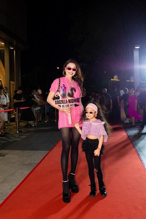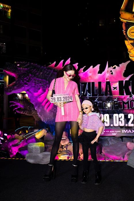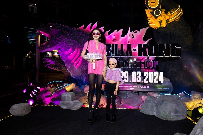 “Godzilla x Kong: “Đế Chế Mới”” là bom tấn Hollywood được mong chờ nhất trong năm 2024. Phim hứa hẹn mang đến những trận chiến hoành tráng giữa hai biểu tượng điện ảnh Godzilla và Kong, cùng với kỹ xảo hiện đại và cốt truyện hấp dẫn. Tuy nhiên, để nêu bật sự mạnh mẽ của nhân vật chính, nhà sản xuất phim đã chọn tông hồng theo pantone 2024 để sử dụng cho phông nền. Vì thế, Trà Ngọc Hằng cũng tinh tế chọn tông màu trên để diện đôi cùng con gái khi tham dự sự kiện. Hơn nữa, phụ kiện đi kèm theo bộ trang phục đến từ những thương hiệu sang trọng càng làm cho Mẹ Con Trà Ngọc Hằng thu hút hơn trong sự kiện.