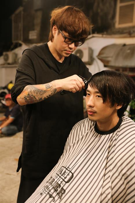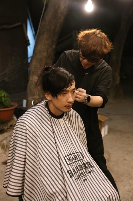 Trong đoạn clip 4 phút được ê-kíp đăng tải, nam diễn viên thực hiện cảnh xuống tóc lúc 2 giờ sáng ngay trên phim trường. Do chưa có kinh nghiệm, anh được sự hướng dẫn của một chuyên gia để tránh hư tóc.