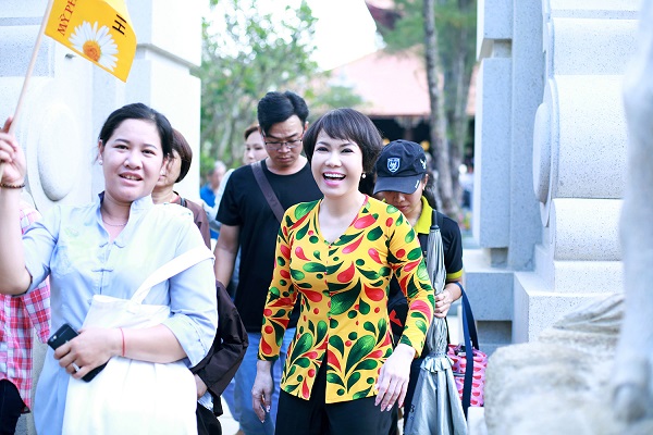 Tintuc - Giữa những ngày tháng Ba, Việt Hương cùng 400 phật tử có chuyến hành hương về Vũng Tàu. Không chỉ ghé thăm và gửi lòng thành tâm tại mỗi ngôi chùa đến viếng, Việt Hương còn bỏ tiền túi và vận động quyên góp giúp đỡ các tăng ni, phật tử và những hoàn cảnh khó khăn, vất vả.