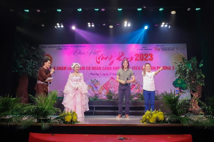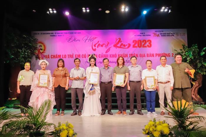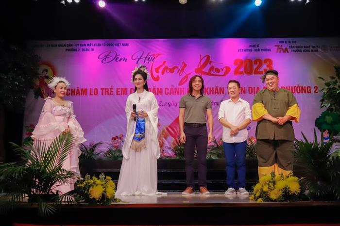 Tối 27/9, gia đình nghệ sĩ Việt Hương – Hoài Phương cùng với UBND Phường 2 – Quận đã tổ chức một chương trình cực kỳ ý nghĩa mang tên “Đêm hội trăng rằm 2023” tại sân khấu nghệ thuật Trương Hùng Minh, dành cho các em nhỏ có hoàn cảnh khó khăn trên địa bàn phường 2, Quận 10 (TP.HCM). Việt Hương hoá thân thành Thỏ Ngọc, Quỳnh Lam làm chị Hằng xinh đẹp, Hoàng Mập là chú Cuội hài hước cùng với nghệ sĩ Minh Nhí, Hoài Phương đã đích thân tặng đến 600 em nhỏ có hoàn cảnh khó khăn trên địa bàn những chiếc bánh và lồng đèn làm quà trong dịp lễ truyền thống này. Những chiếc bánh được chính các đầu bếp của Bánh Ngon Chuẩn Âu Sugar làm riêng cho chương trình đặc biệt này. “Chương trình mùa trung thu trở thành một hoạt động không thể thiếu của Việt Hương mỗi năm. Trước ngày rằm tháng Tám, Việt Hương sẽ lên kế hoạch mời các nghệ sĩ, lên chương trình và những món quà gửi đến các em nhỏ. Năm nay, chương trình được lần đầu tiên tổ chức tại sân khấu nghệ thuật Trương Hùng Minh lại càng thêm ý nghĩa. Nhìn thấy sự hân hoan trong ánh mắt của mỗi em nhỏ Việt Hương luôn thấy rất xúc động. Việt Hương biết rằng nhiều bạn nhỏ vì hoàn cảnh gia đình nên sẽ ít có cơ hội xem những chương trình văn nghệ nên khi các em được mời đến sẽ rất mừng. Có nhiều phụ huynh có nói với Việt Hương là khi các con được mời đến tham gia chương trình đã nôn nao mấy ngày và đến sớm hơn 1 tiếng để mong được xem các anh, chị biểu diễn. Việt Hương hy vọng, mình có thể lan tỏa niềm vui, sự yêu thương đến nhiều người, nhiều hoàn cảnh nhất có thể. Bởi vậy, chưa bao giờ Việt Hương dừng lại trong các hoạt động thiện nguyện dưới nhiều hình thức và thời điểm khác nhau trong mỗi năm.”, nữ nghệ sĩ chia sẻ.