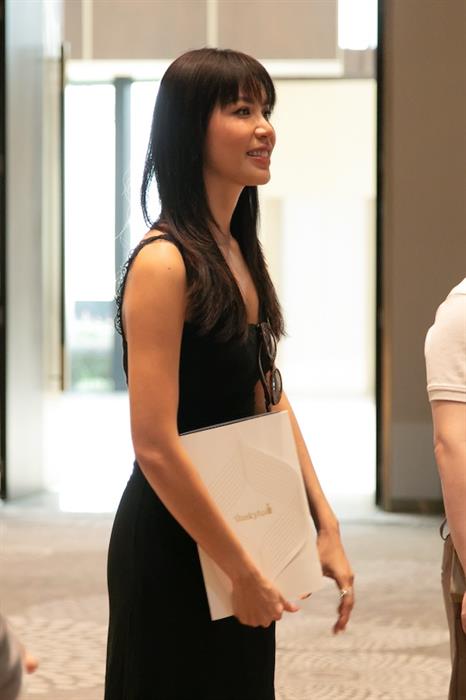Minh Tú diện đầm đen đơn giản với tóc mái ngang trẻ trung, Chris (tên thân mật chồng Minh Tú) năng động với áo thun trơn và quần jean, cả hai vui vẻ sánh bước bên nhau đến địa điểm cưới. Vợ chồng Minh Tú với thần sắc tươi tắn nhưng cũng lộ nét lo lắng khi xuất hiện và đó cũng là cảm xúc thường thấy của các cặp đôi sắp cưới khác trong quá trình chuẩn bị tổ chức lễ cưới.
